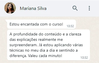 Durante todo o curso, você contará com suporte exclusivo de especialistas, que estarão ao seu lado em cada etapa, garantindo que você evolua com confiança.